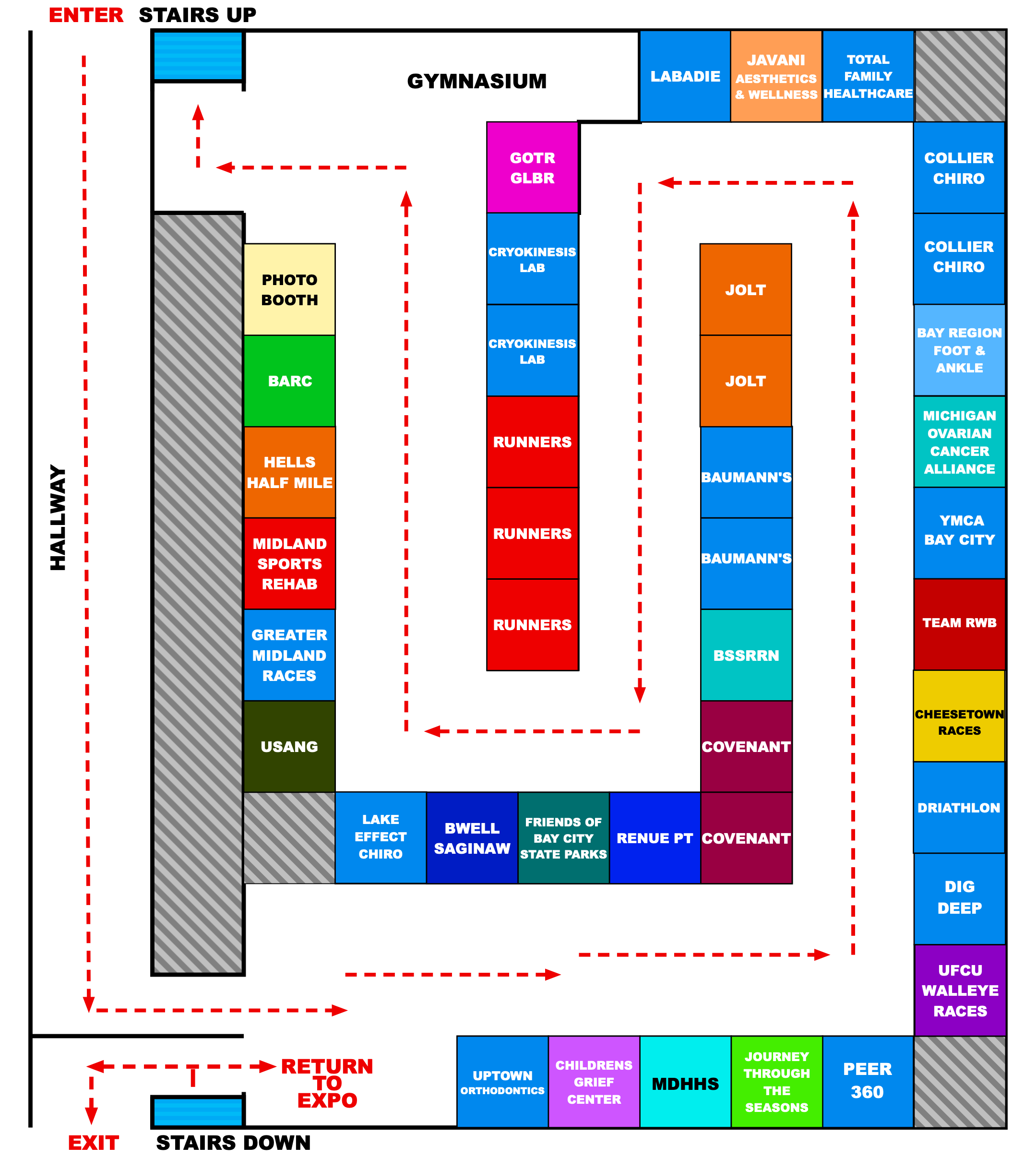 Businesses and Organizations wishing to reserve a booth must contact John Shankool at (989) 280-2242 or by emailing shankoolmoogs@gmail.com. *Available expo booths are numbered in the diagram below. This diagram will be updated regularly.